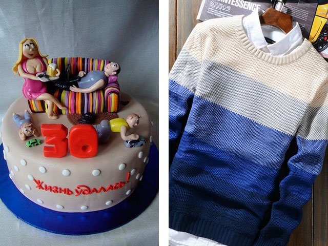 An unusual gift will be an original cake ordered from a professional pastry chef, provided that the man loves sweets. The cake will be made according to any sketch and on any topic, you can also make a festive inscription, for example, “Best husband” or “Happy birthday, dear!”. It will not be superfluous to coordinate with the confectioner what sweets and fruits the birthday man loves.