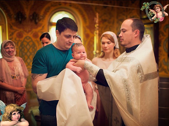 During the ceremony, the godmother plays one of the main roles - she holds the baby in her arms and hands it to the priest for bathing in the font.