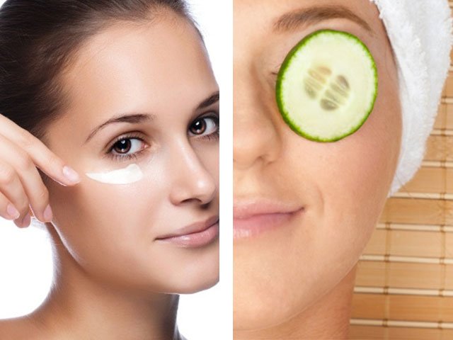 Also, a cucumber or gruel from potatoes sliced in circles will have a cooling effect if they are briefly put in the refrigerator before application to the face. In addition, potato lotions help fight dark circles.