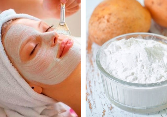 The procedure is intended as a means for tightening. The use of an ingredient such as starch improves the condition of the face as a whole. This is a good option for whitening. It helps nourish vitamins and improve metabolism, is able to regulate the sebaceous glands in oily skin type.