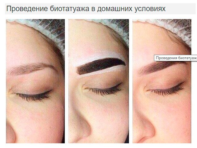 How to paint (biotatuage) at home without visiting the salon? Before you start painting, it is recommended to give the correct shape, which through coloring will enhance the effect. The hairs are placed, observing the architecture of the eyebrows. You can practice in front of the mirror displaying various forms or resort to computer-assisted selection of the ideal form. Such services are offered in salons, according to reviews this is the best option.