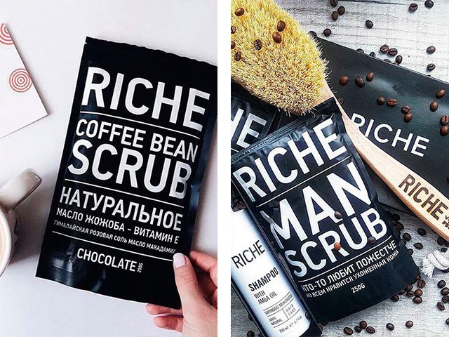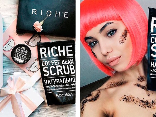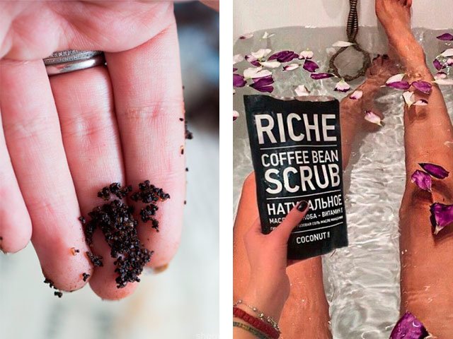 There are tons of body scrubs from companies like Black Pearl, Organic Shop and others. But the tool received the best reviews Riche coffee bean scrub. It consists of ground grains of Robusta, which is a natural coffee. It also contains nutritious unrefined oils.