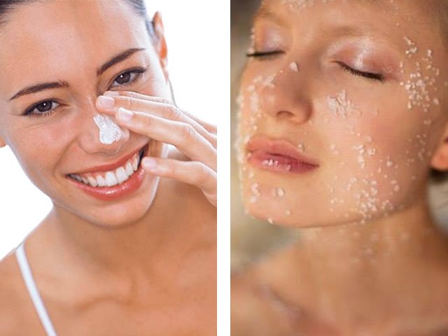 1. You will need yogurt (kefir can be used), it must be mixed with sea salt (1 tablespoon). Apply to face and massage in circular motions, then wash with warm water.