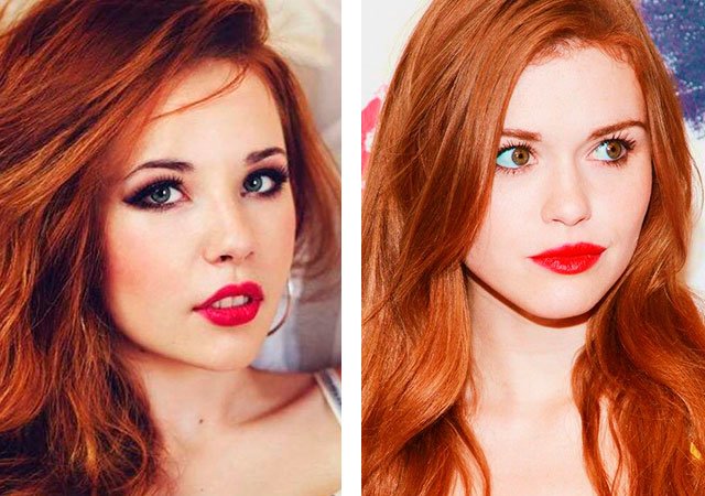Note that the red product on the lips of the red-haired lady will look very impressive.