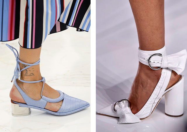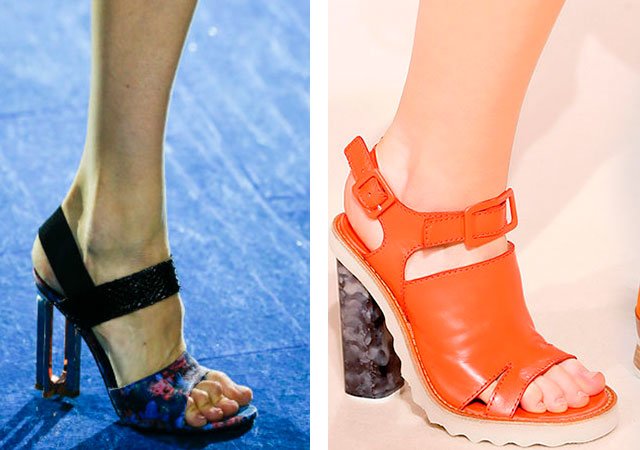 Others, for example, Carolina Herrera, Dolce & Gabbana, Chloé, Michael Kors, Bottega Veneta, Gucci declare themselves to be huge elements like square heels or large straps, but at the same time they look harmoniously on the legs due to bright elements decorating them: shiny glitter , rhinestone, stones, sparkling buckles.