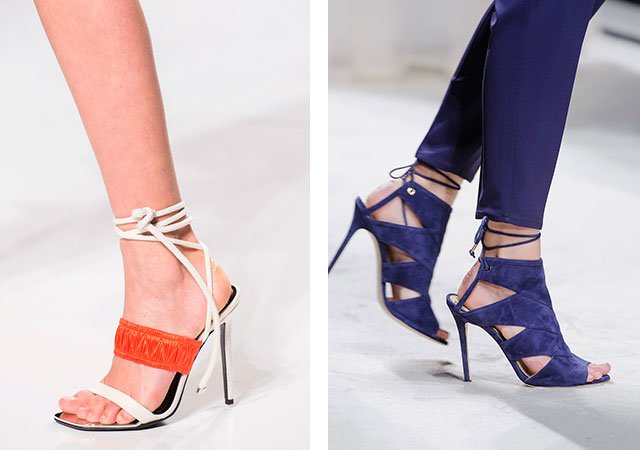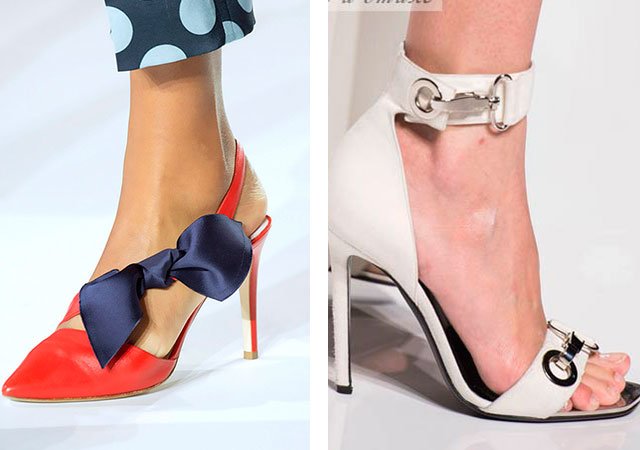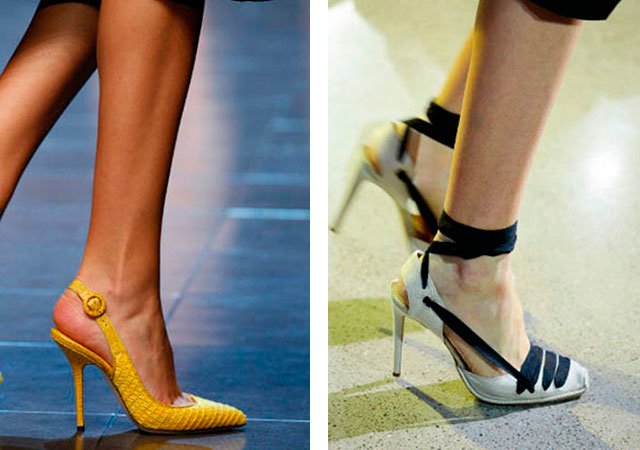 Many models released this season from under the pencil of eminent designers create from thin leather strings - they are airy and delicate, emphasize the beauty of the female foot. Among such collections, Saint Laurent, Miu Miu and many others stand out.