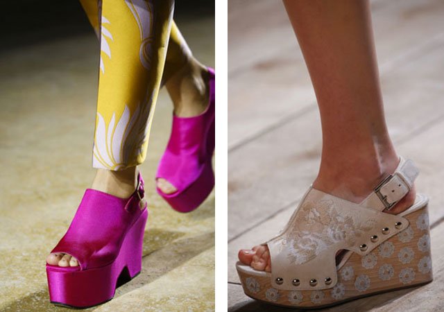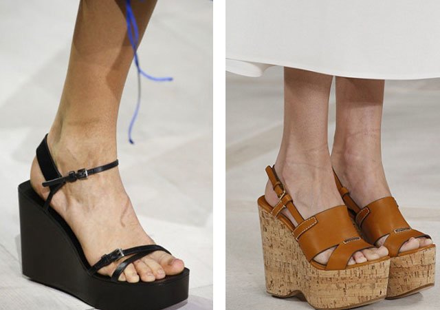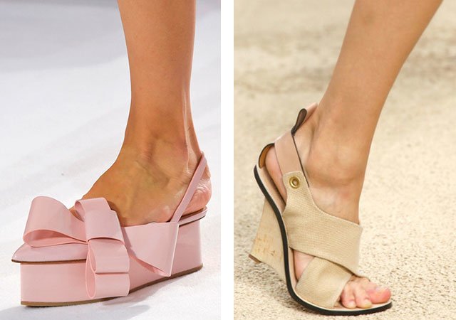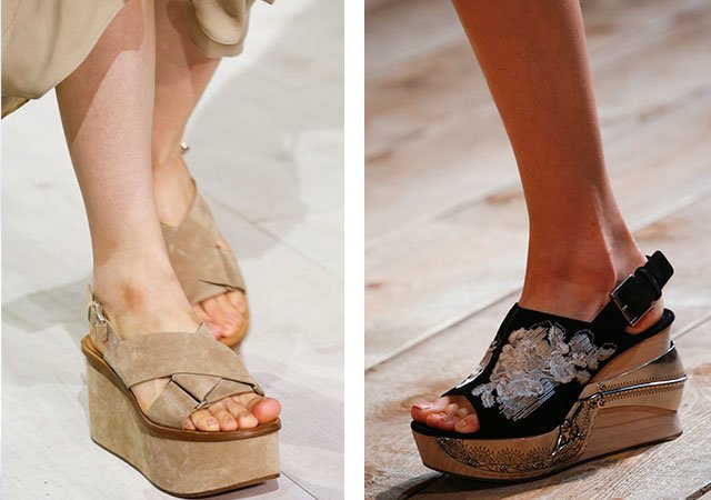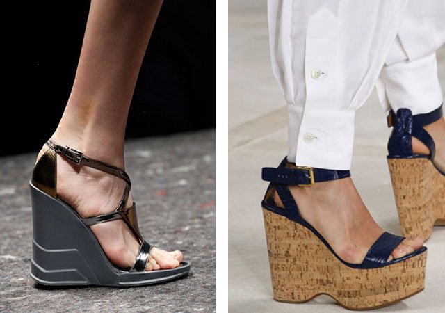 At the peak of the popularity of platform sandals. The main advantage of the platform is the addition of growth and harmony to the figure, while it is convenient and practical. Particular attention is paid to the wedge material: woven, rag, bright and colorful, with embroidery elements, textiles and leather are used. The more original the wedge is decorated, the more concise the top.