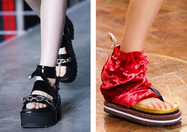 The favorite of the year - stylish sandals on a tractor sole - the new items of this season, which appeared for the first time in the mid-70s. They are able to create a modern style and even an avant-garde image. The sole may be a single platform or separate heel. The height of the platform can be low or reach 15 cm, and at the same time, this shoe is as comfortable as possible, and most importantly - safe.The platform's fashionable color is white, but there are options for other colors, not only on white soles.