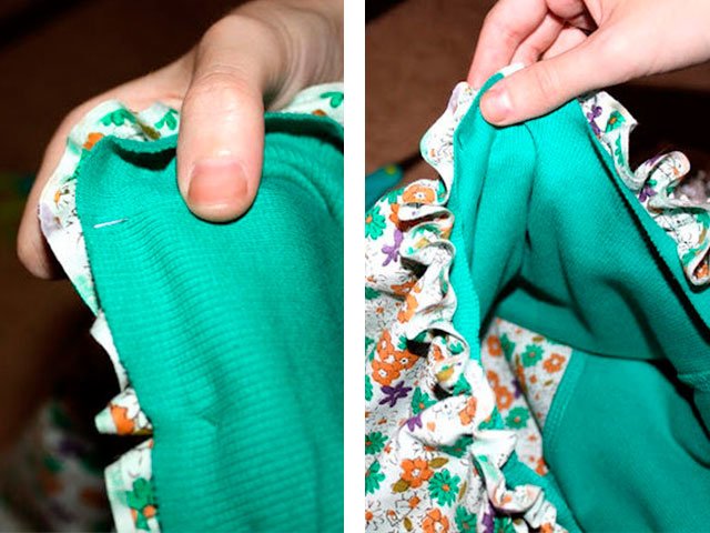 4. Connect the top and bottom, as shown in the photo below, and notice the details to each other. The top should be without folds, and the lower part - on the contrary. If everything is done correctly, then feel free to sew on typewriter.