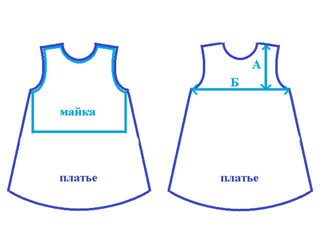 3. Before you cut the same dress out of fabric, you need to measure whether it is suitable for the child. For this you need measure lines A and B. (See photo below)