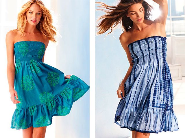 This dress is very suitable for a beach look. And most importantly - his very easy to sew with your own hands. Great for him cotton or linen. We cut identical back and front parts from the selected fabric. Fold them and scribble the side seams. Should be noted places for sewing gum into the product. To do this, simply attach a dress to yourself. Elastic bands cut the same size: Grasp yourself with an elastic band to make you comfortable. We sew the elastic bands and evenly placing them on the product, sew them. You can also make a frill, if necessary.