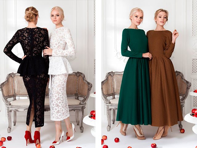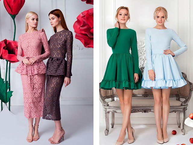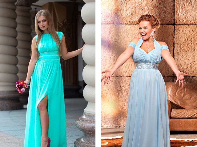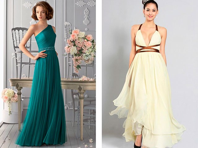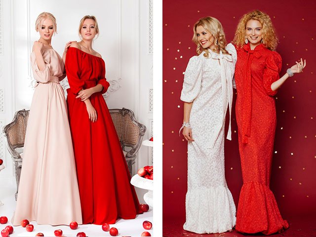 For long outfits, it is important to choose the right style, for example, lush outfits do not look harmonious for such a case. But here a variety of textures and colors are quite acceptable.