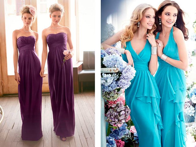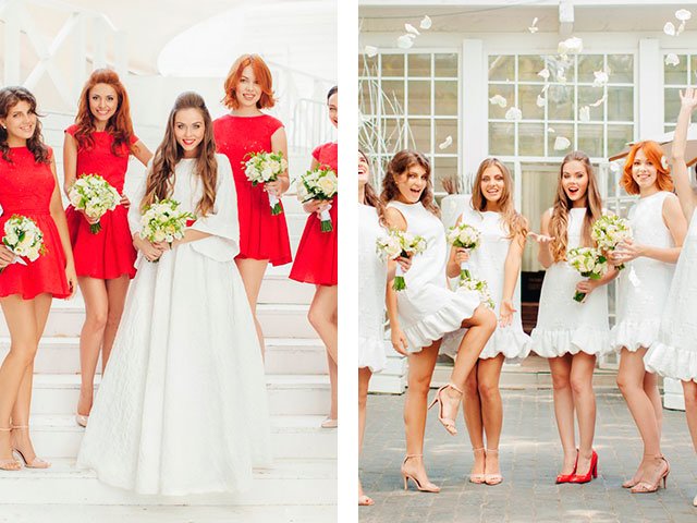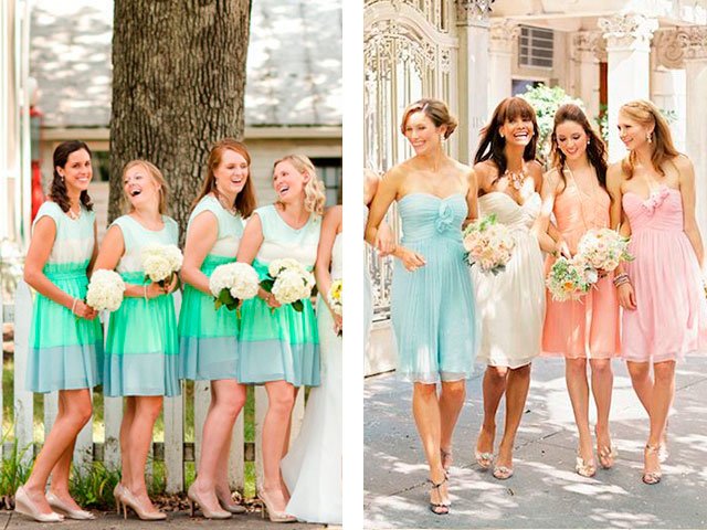 If the bride decided to give preference to tradition (white dress), literally everything will be combined with it, but if she will be ivory, then girls should choose clothes in peach, lilac or brown tones, blue, purple, beige or blue.Poor fit with this outfit: yellow; cream and green.