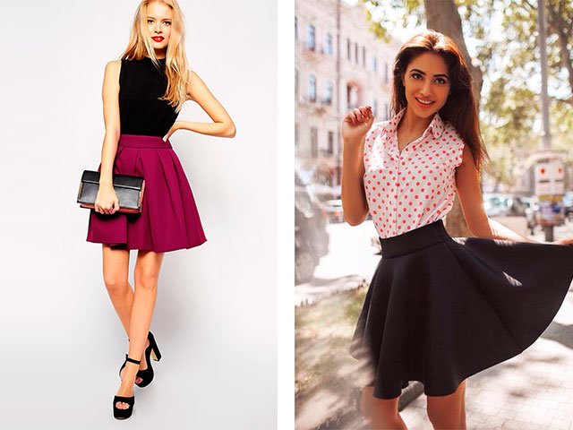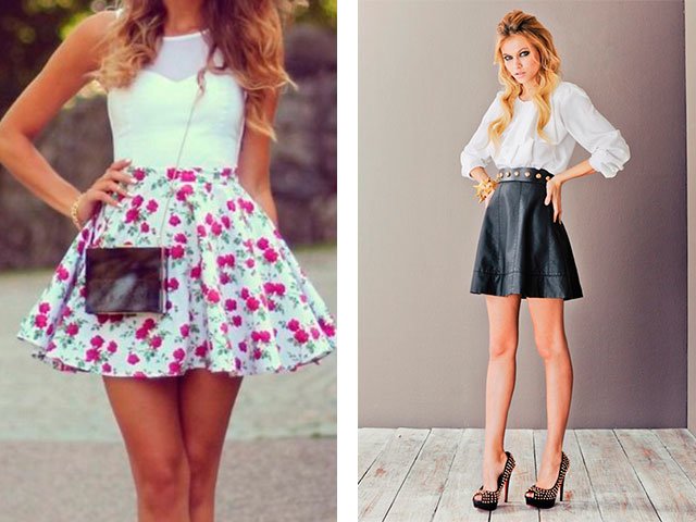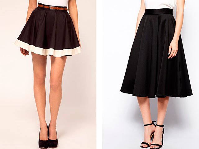 And for girls who want to hide a few centimeters of the waist, there is a solution - a sun skirt with a high waist. It is ideal for those who want to emphasize their hips and point to a narrow waist, due to the wide belt on it. Such things just look great with shoes or high-heeled sandals, which further emphasize the whole grace of this image. Such models are sewn from different materials for a variety of occasions and seasons. The most popular are sun skirts with a high waist made of velvet, knitwear, satin, or dense fabric for the cold season.