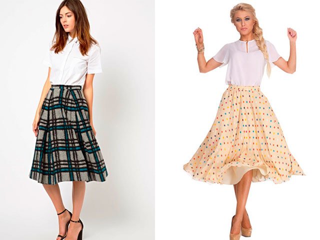 For lovers of the classic style, long skirts below the knee with floral prints are suitable. Often they prefer a classic cell, or a plain color. For modern girls, you can choose a long model with a petticoat.