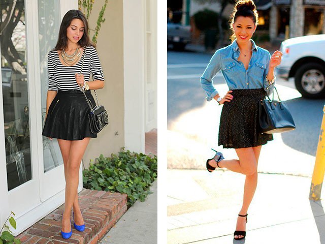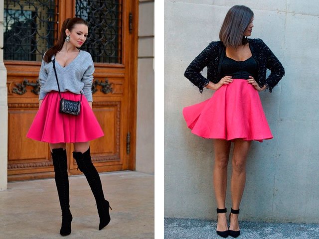 If you are the owner of beautiful legs that you would like to brag about, or you are just a young and courageous girl who does not prefer the classical style, then this image is for you! You can safely put on such a skirt both at work and at the club, but it is better that these are two different skirts. The first one can be a gray or black cage, with an elegant print, or just a pastel color. But in a club or at a party, the skirt of the sun is bright, challenging colors: red, blue, yellow, but do not forget about neon colors.
