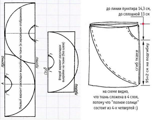 Skirt sun: pattern and calculation. The calculation of the pattern is done as follows: the radius of the future product is calculated. For this, the volume of your waistline, for example, 65 cm, is divided by the number of PIs multiplied by two.