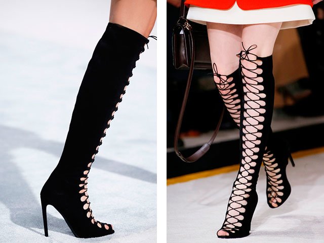 - Lacing Models also very popular this fall and winter. They outline the vertical line and make the legs visually slimmer.