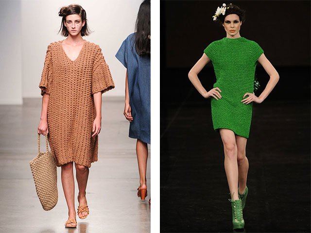According to numerous photos from fashion shows, the return of the 80s fashion with abstraction, geometric, chaotic patterns that are easy to crochet is noticed.