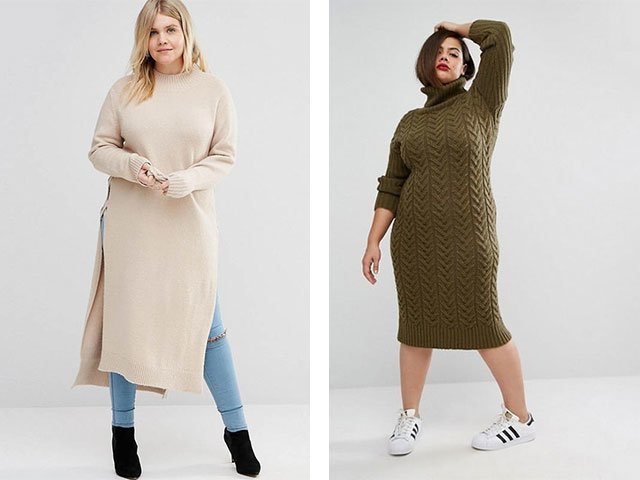 It is always more difficult for full women to choose warm clothes, because more often than not, they make them even more fat and make a shapeless and so full figure. To do this, choosing the right silhouette, shape and material with the help of a photo, you will not only emphasize your advantages, but also be able to hide the flaws. To do this, it is important to remember three simple rules: do not wear silhouettes with large decor, do not rush to a colorful volumetric pattern and, if possible, wear stretch underwear. And, of course, adequately evaluate their parameters.