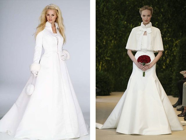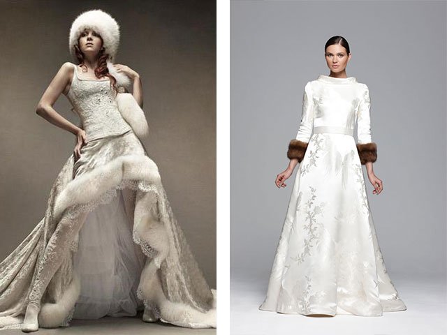 To your taste, choose from the photo what suits you best. Choosing a wedding dress for the bride in the cold is not easy, as it should be beautiful and warm. Therefore, if you are not confident in your abilities, it is better to entrust this work to the master, because autumn and winter are also suitable times for weddings and you should not be afraid of cold weather.