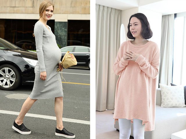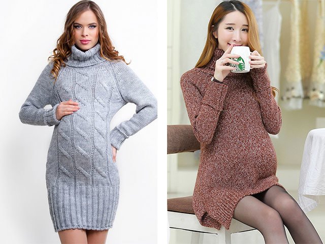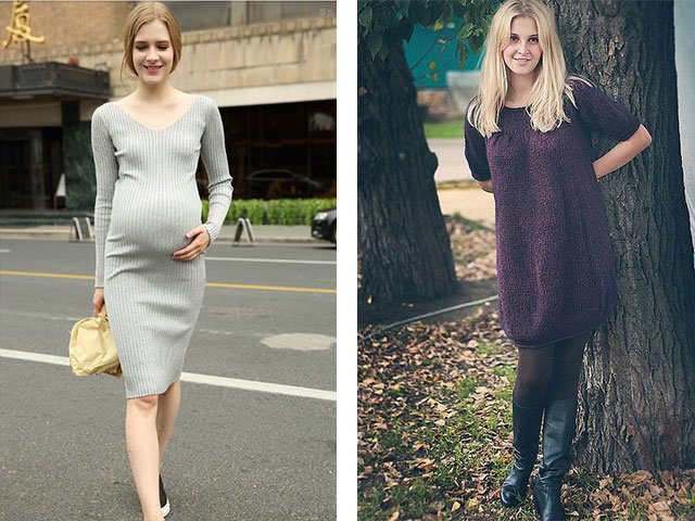 In any clothing there is a compositional center, and in the case of pregnant women, a rounded tummy is this center. Therefore, the styles of winter dresses are almost always plain with a light and delicate finish. Long models or high-waisted ideas that can be worn after childbirth are also great.