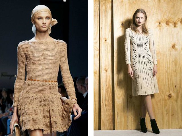 The basis of any woman’s wardrobe is a short or medium length floor-length dress, distinguished by its silhouette and the fabric from which it is made. Many photos and videos, pictures and images of the collections of famous couturiers are full of beautiful costumes crocheted or knitted for the fall and winter season.