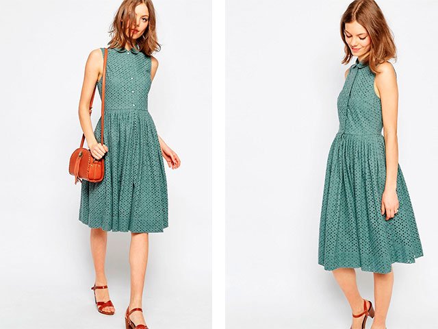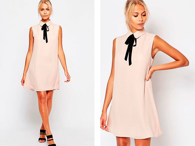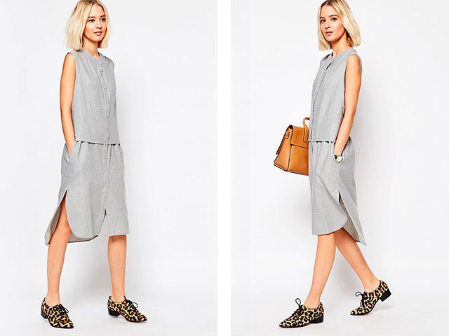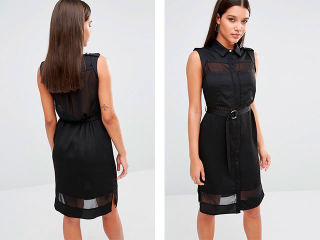 This model is notable for its cut-out cut, unmarked waist and an elongated shoulder line. It can be worn on a date and at work only if your dress code is not too strict.