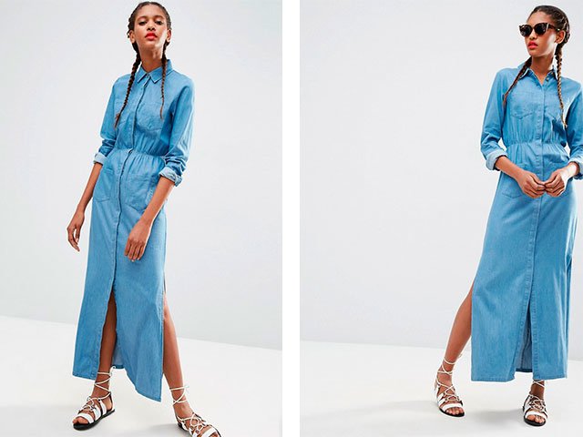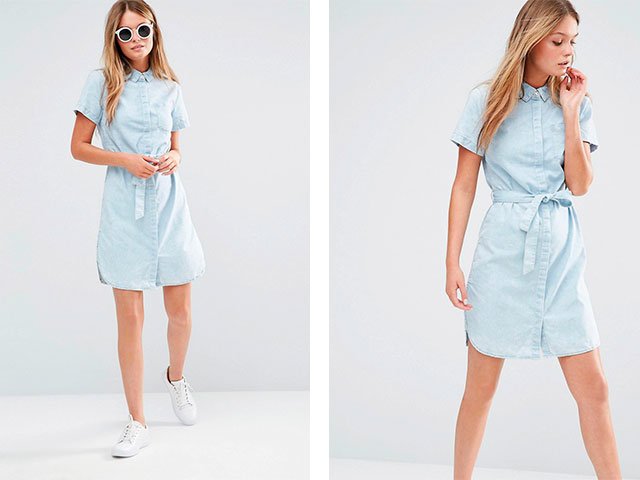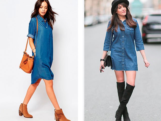 What to wear denim dress shirt? It should be borne in mind that different shoes and accessories will suit different product lengths. Often, such models are sold with a belt in the kit, if it is not, then you can choose it in the color of the shoes. The photo shows several trendy images of this summer.