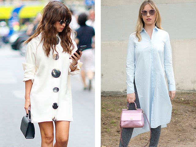 Women and girls with slim legs are advised to wear a dress shirt as a separate item, not complementing it with jeans, leggings or trousers. In spring you can wear flesh-colored tights. If this is too bold an image for you, then you can complement the image with skinny jeans or skinny jeans. Here you need to focus more on accessories: chains with large pendants, bulky necklaces, necklaces, rings and earrings. Do not forget about clutches and take care in advance of choosing the right shoes.