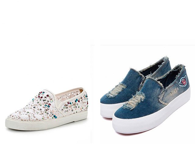 Cotton, canvas and denim are the materials from which shoes are sewn for warm summer weather.