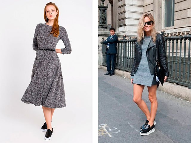 For a romantic look - a gray knitted dress, white or with a print.