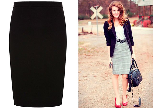- Choose pencil skirt!whose length is just below the knee (these are the girls' best friends!).