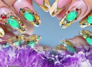 But if you don’t have time to spend three or more hours on a complex design, ask the master to put stickers on the nail and give it “life” using colorless gel polish, adding drops.