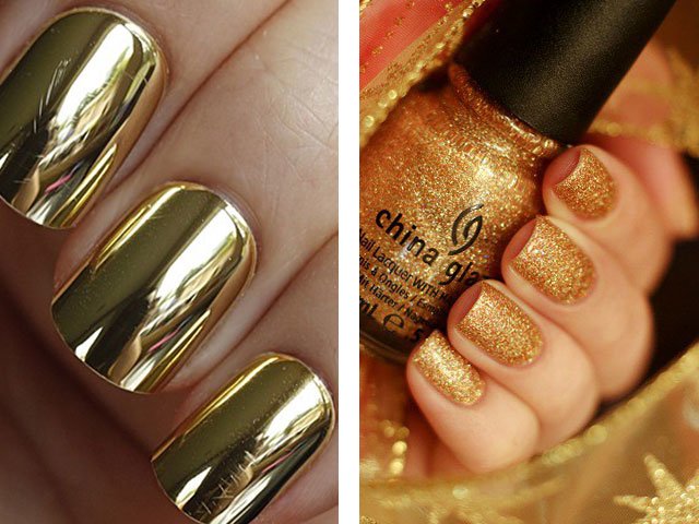 GoldLooks perfect on short nails and goes well with black, red and beige colors (get inspired by the photo).
