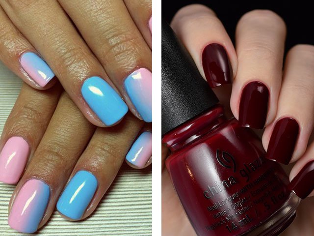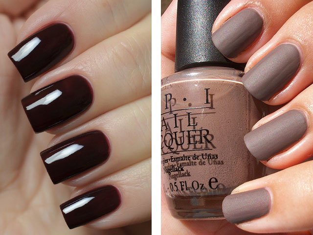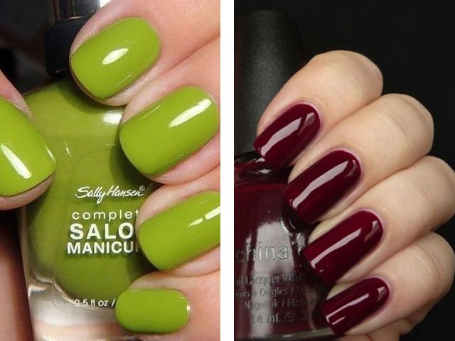 Cream, light gray and green shades will also be popular. Designers have chosen the versatile tone of nail polish to be the fashionable color of dark red wine, which is amazingly suitable for any clothes and image (photo of fashion bloggers confirms this).
