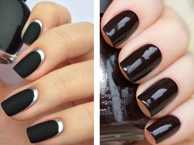 Gothic style. Suitable for young ladies with a dramatic image. It is black, eggplant, maroon, green or plum. To give the nails a special charm, stylists suggest adding a design with gold or silver to such a manicure (see photo).
