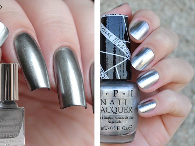 Silver metallic. The fashion trend of this season looks great on short nails. Will please lovers of restrained brilliance of a metallic shade.