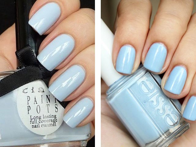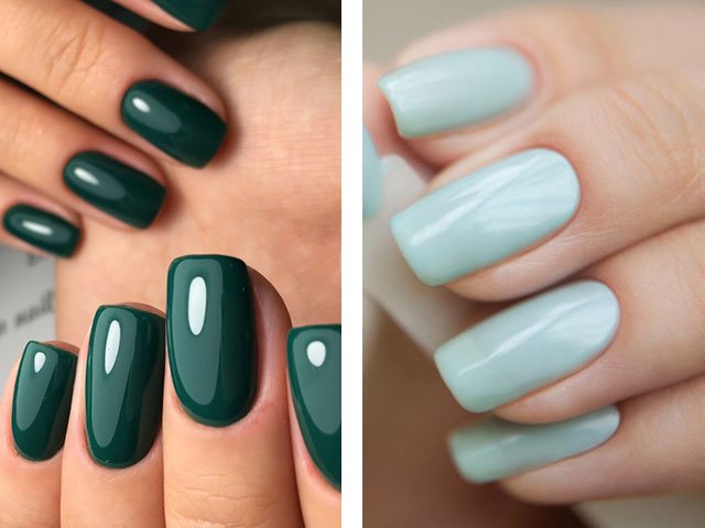 Aquamarine. Will be popular in the warm season. The purest shade of the mix of blue sky and green grass reminds us of summer. Looks good on both short natural and long square nails.