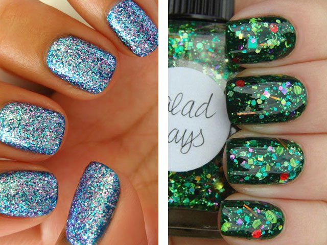 Solid Glitter. If you want a little chic and shine, you should try to make a fashionable manicure with false rhinestones or sparkling foil. From it you can easily cut out any figures and give gloss to the most modest shade of nail polish.
