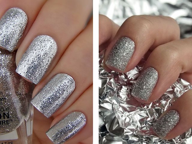 Silver glitter - trending manicure with sparkles of silver color. Ideal for a festive look.