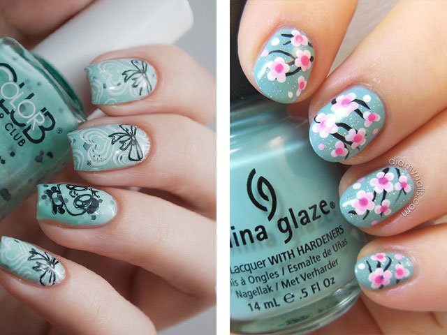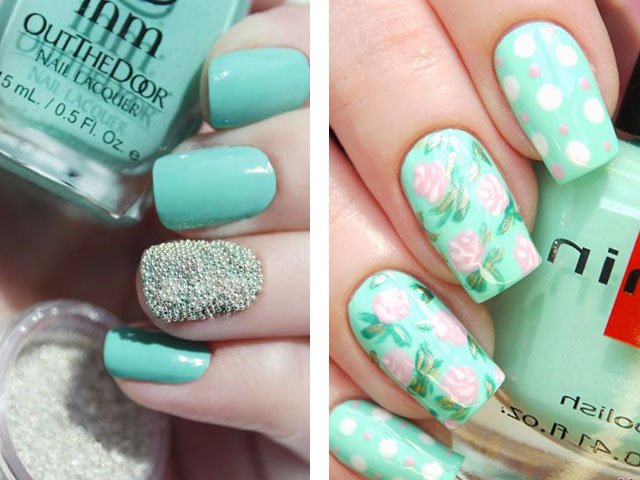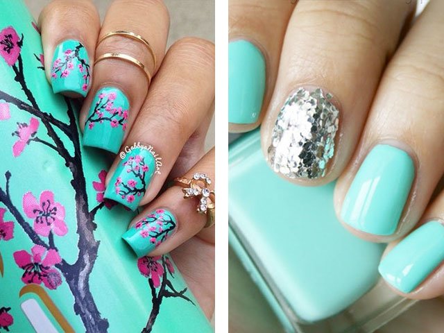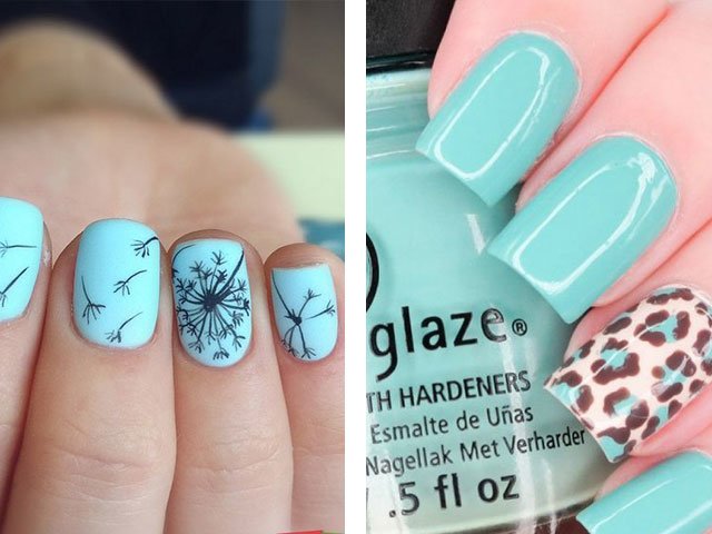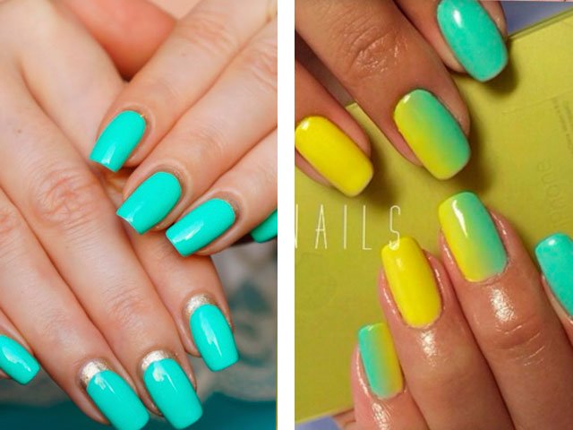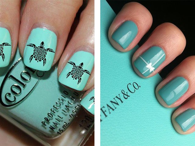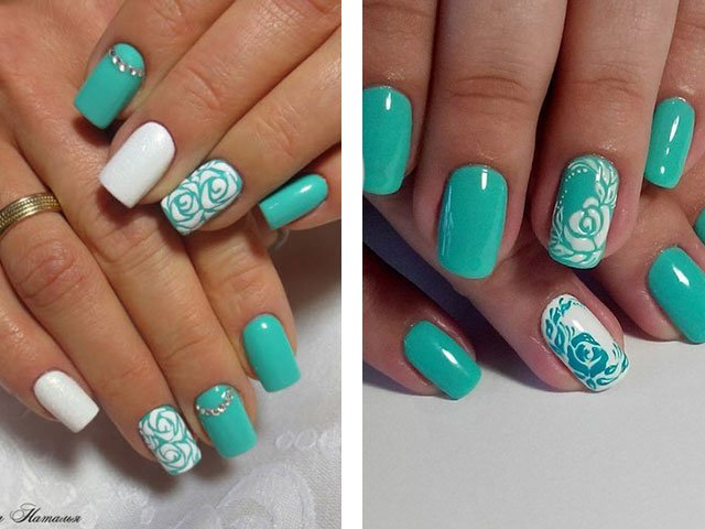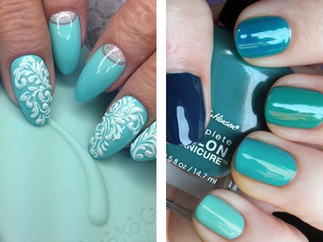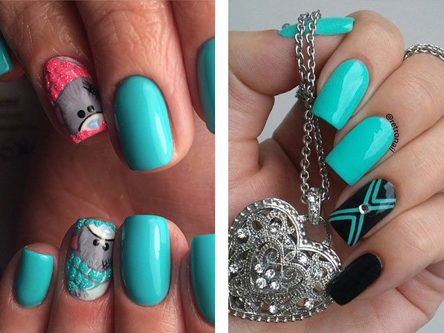 Beautiful manicure with turquoise varnish on short and long nails - examples of the best works