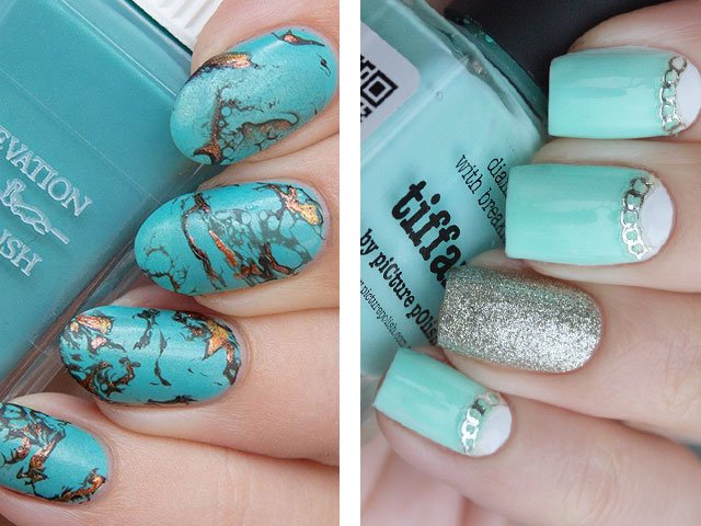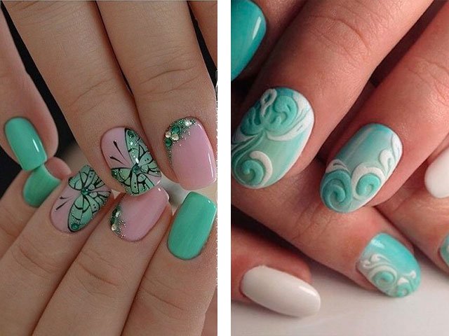 Bright women's wardrobe obliges you to match it in everything, including the shade of marigolds. Today we suggest discussing variations of manicure for a turquoise dress. Consider the photo and watch a video on the topic, discuss which design is better to choose so that the image is beautiful and harmonious.