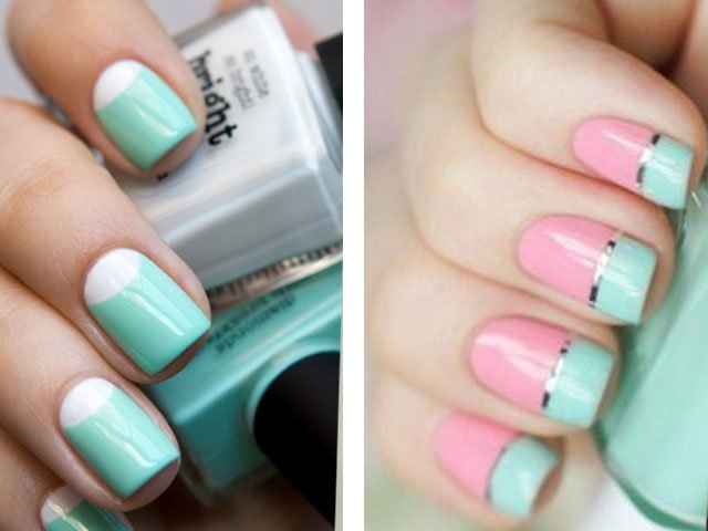 It is acceptable to apply different forms on one hand.As additional shades, you can use any color: black, pink, white, yellow, etc.
