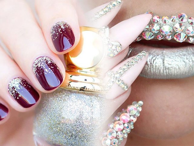 Video how to make a manicure with rhinestones and sparkles at home