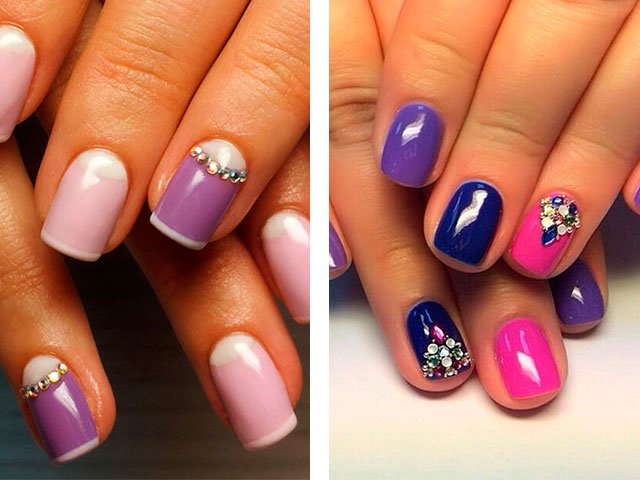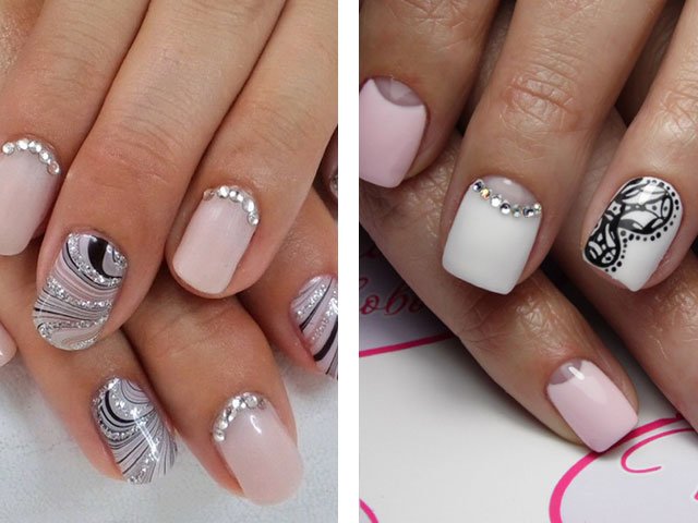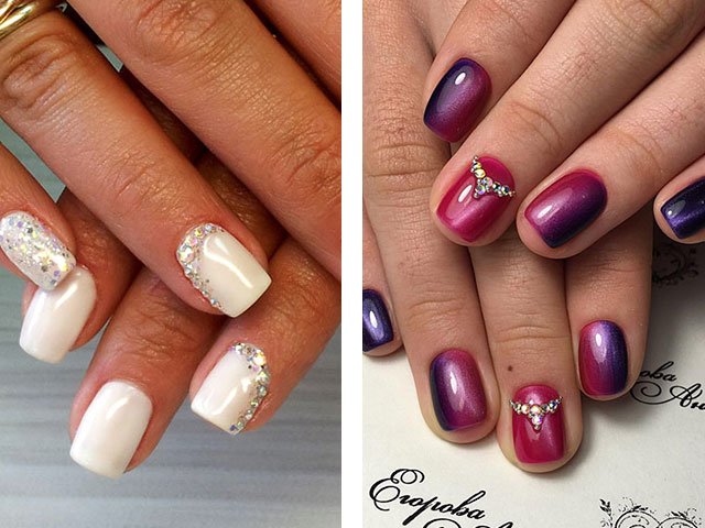 Rhinestones from Swarowski are very popular. In order to make the design of short nail plates, it is better to stop the choice on elements of a small size. Large rhinestones will look more tasteless than spectacular.