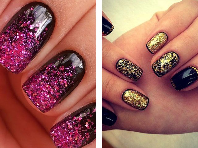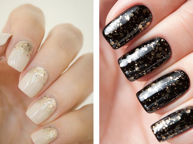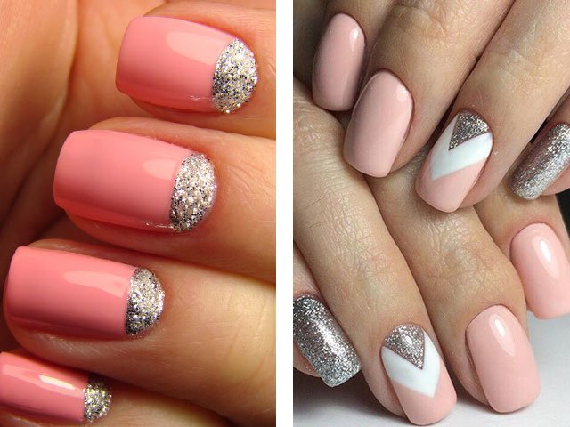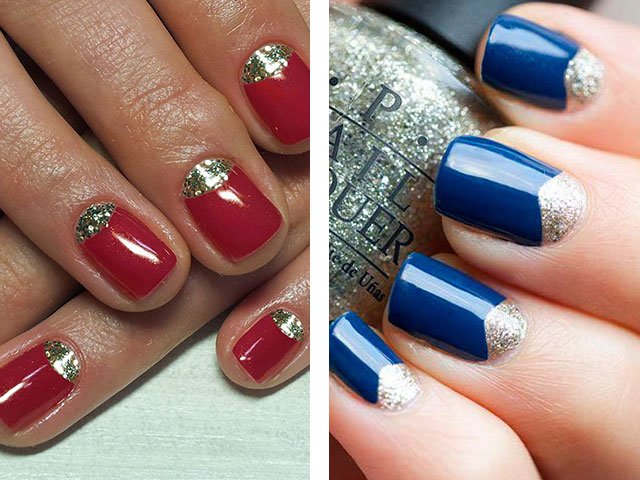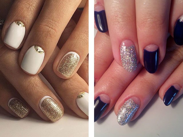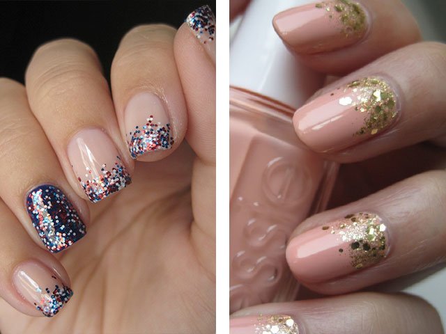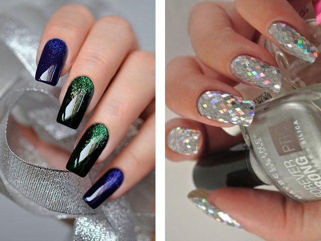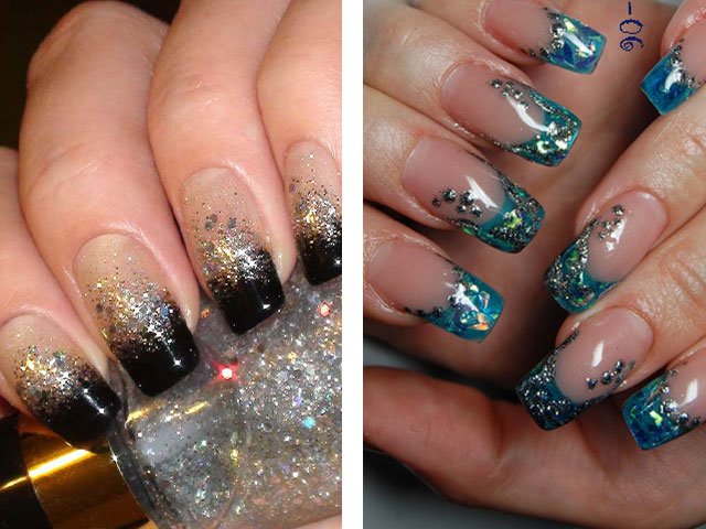 The colors used in this design are very diverse. For example, New Year's design can be made with silver or gold glitters. In the summer version, brighter and more saturated tones are used. Numerous photo and video tutorials step by step tell how to use sparkles.