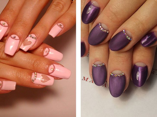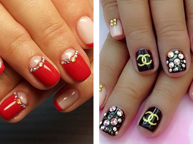 The use of rhinestones has several advantages. Firstly, they look beautiful and spectacular. Secondly, you can use them more than once.Thirdly, such a design is difficult to implement, it can be done at home.