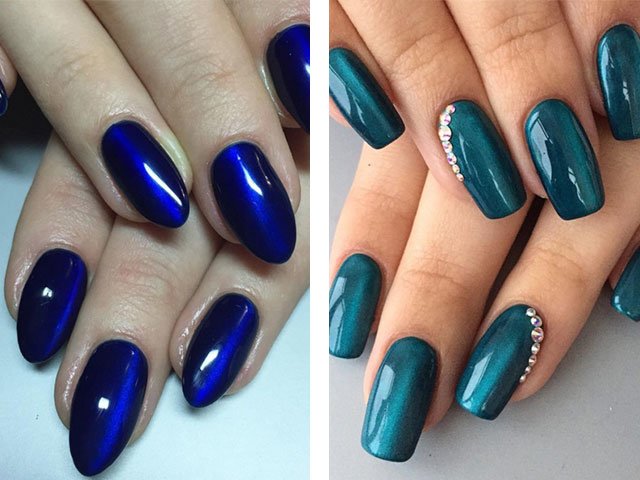 This bewitching effect of the stone inspired designers to create gel polishes that mimic the shining semiprecious stone. Gel polishes with a luxurious glossy finish have gained immense popularity among fashionistas; all modern beauty salons offer this novelty. We present to your attention a photo of the idea of a trendy coating, as well as photo and video lessons of its application, which you can repeat yourself at home.