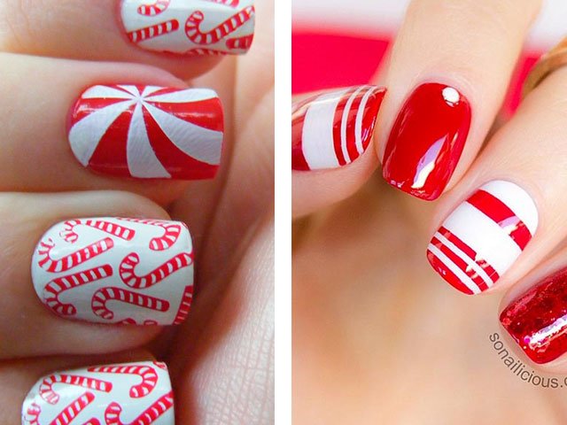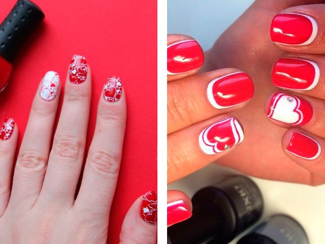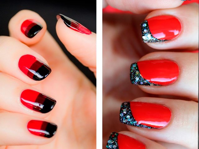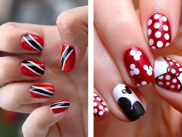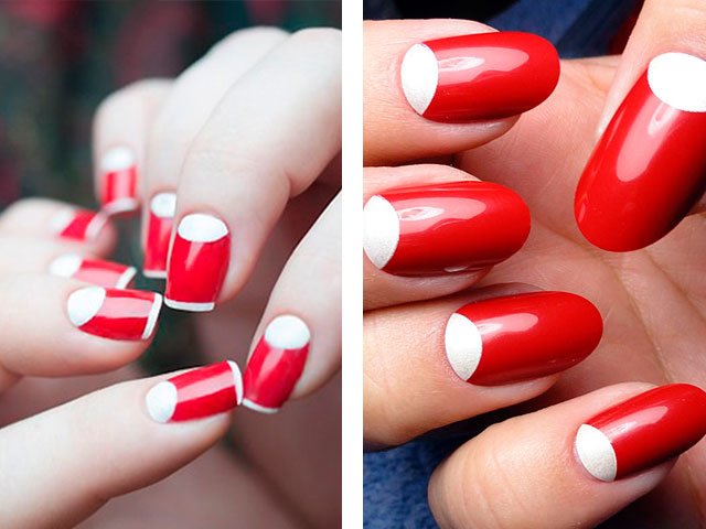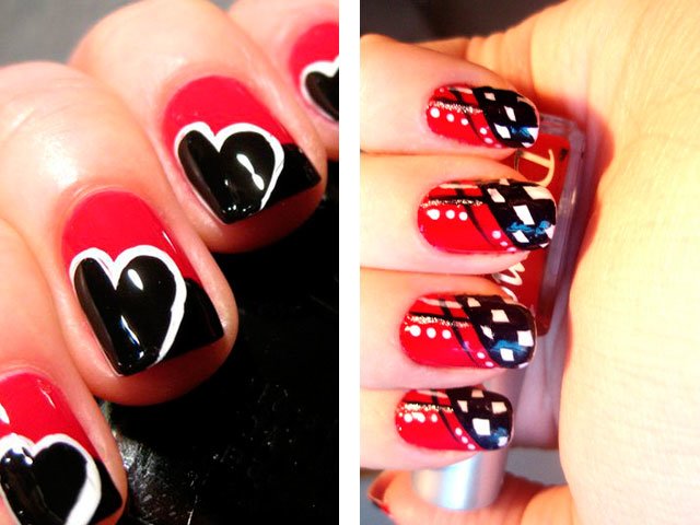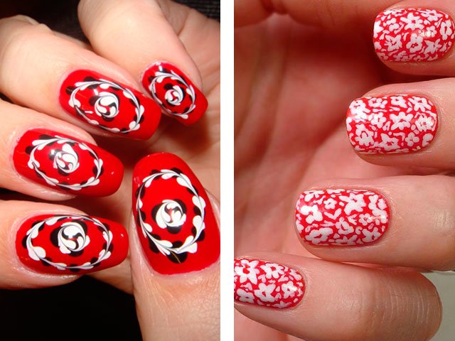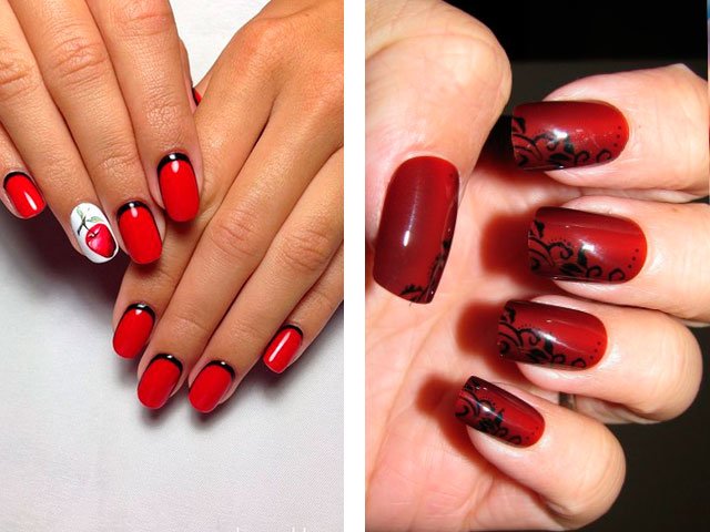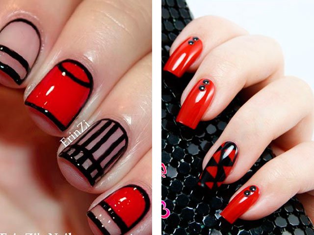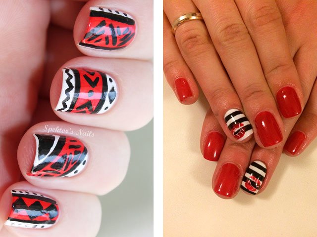 Manicure red with white and black.